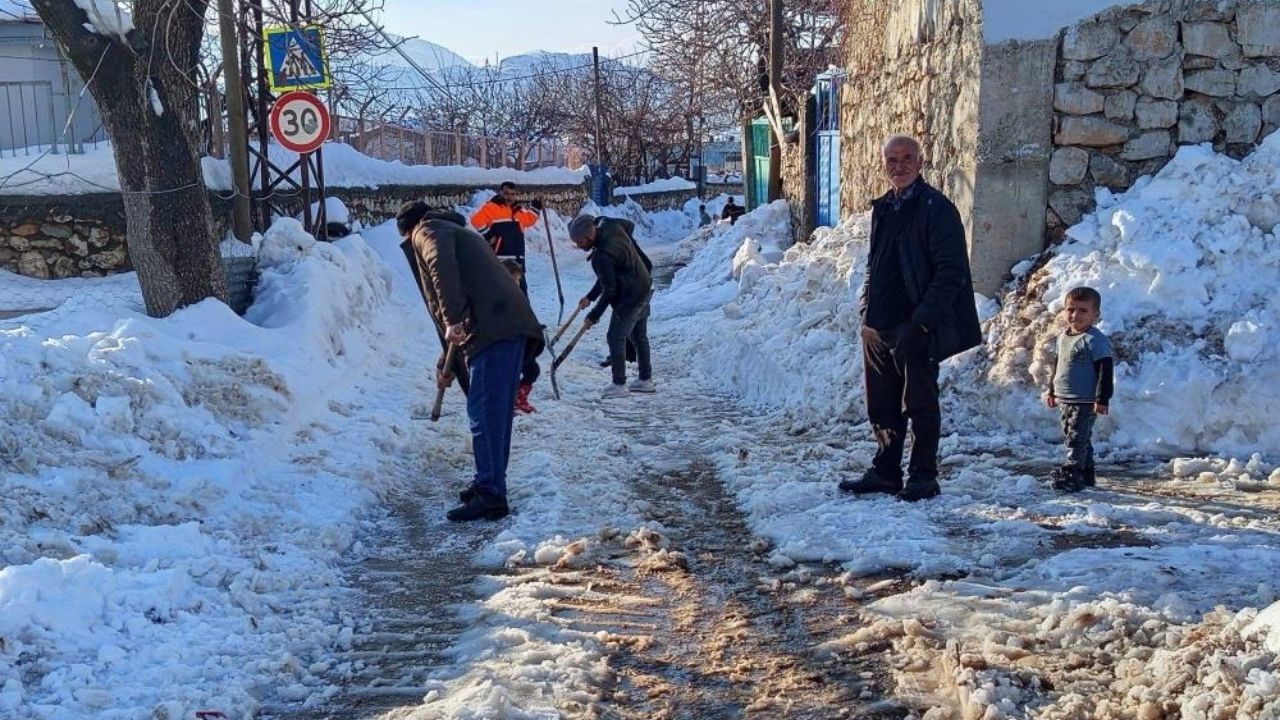 Diyarbakır'ın Çermik ilçesinde etkili olan kar yağışı, Kuyu Mahallesi'nde yaşayanları zor durumda bıraktı. Kar nedeniyle kapanan dar sokaklara belediye iş makineleri giremeyince, mahalle sakinleri harekete geçti. Vatandaşlar, imece usulüyle bir araya gelerek ulaşımı felç eden karları kendi imkanlarıyla temizledi.