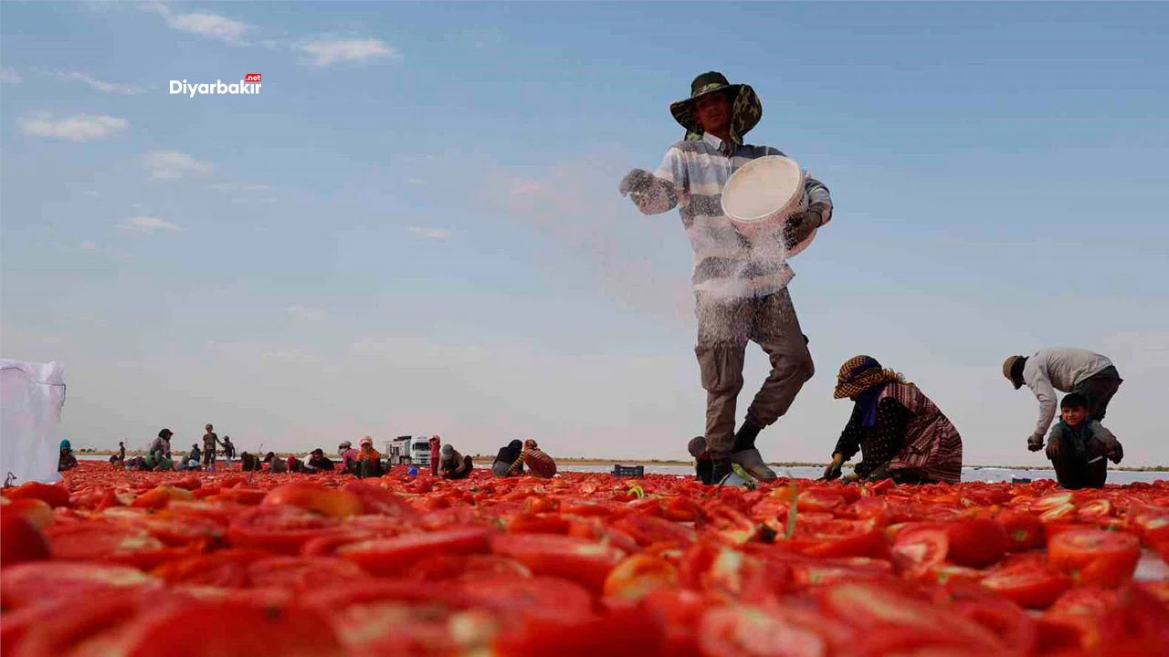 İşçiler, hasat edilen domatesleri sentetik kumaşlar üzerine serip ikiye bölerek tuzluyor. Kavurucu 40 derecenin üzerindeki sıcaklıkta yapılan bu işlemin ardından domatesler, 5-6 gün güneşte kurutuluyor.