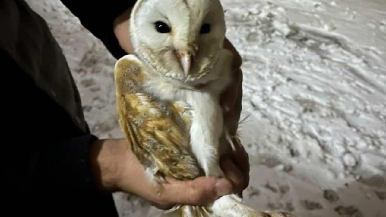 Diyarbakır'ın Çınar ilçesinde, soğuk hava bir peçeli baykuşu zor durumda bıraktı. Soğuktan korunmak için bir çıkış arayan baykuş, nihayet Höyükdibi köyündeki bir büyükbaş hayvan ahırına sığındı.