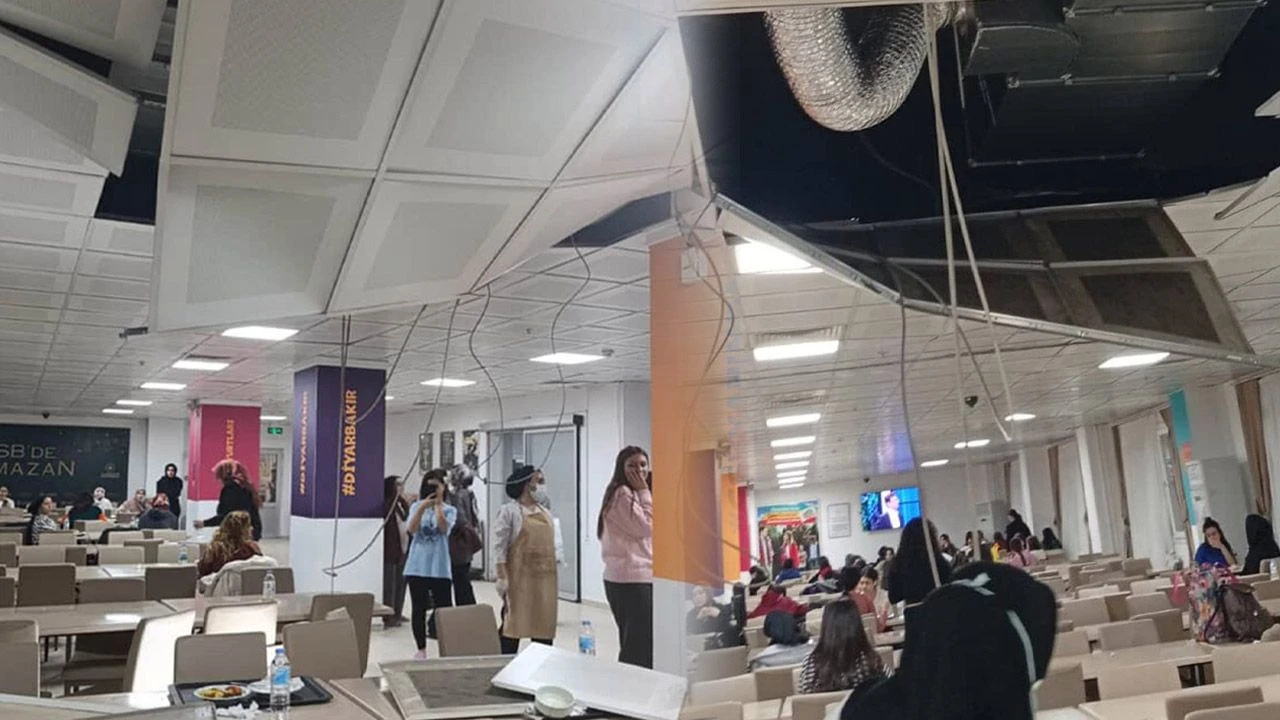 Diyarbakır’da KYK yurtlarında yaşanan tavan çökme olayları öğrenciler arasında artan bir endişeye neden oluyor. Son olarak Süleyman Bin Halid KYK Kız Yurdu’nun yemekhanesinde akşam yemeği sırasında panel tavan bir anda çöktü. Öğrenciler, tavan panellerinin masaların üzerine düşmesiyle panik içinde kendilerini dışarı attı.