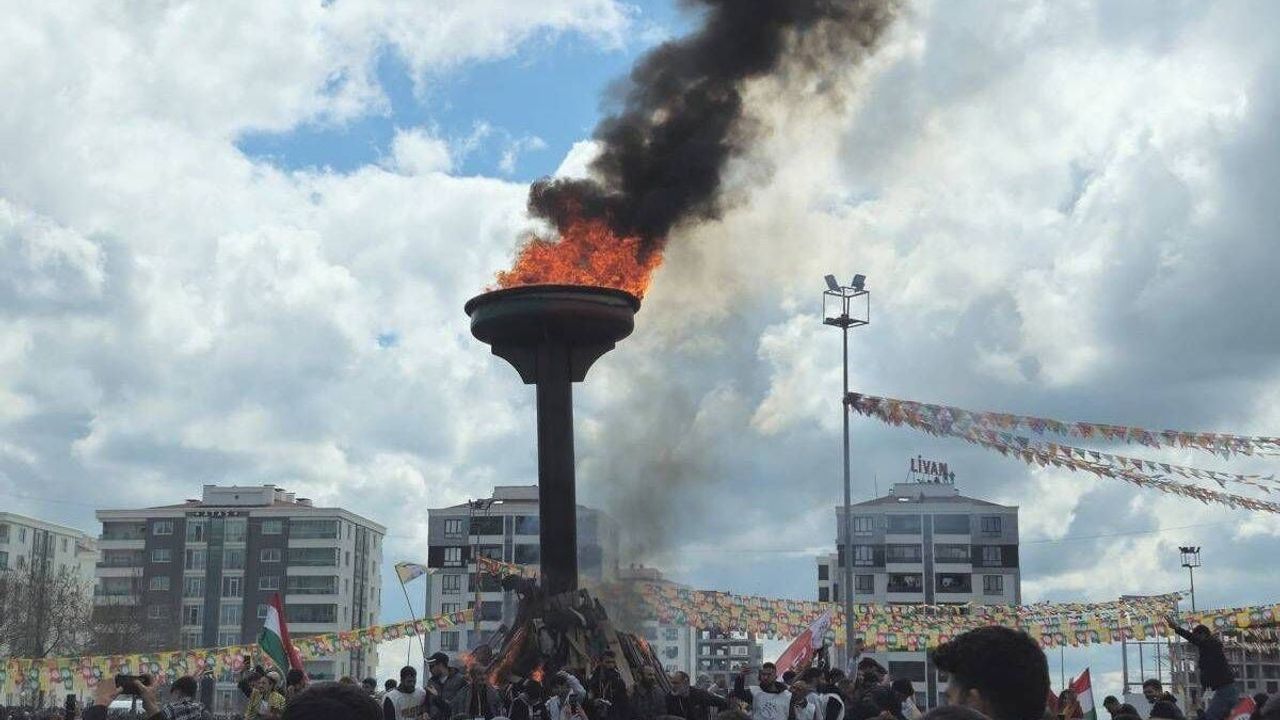 Diyarbakır’ın Bağlar ilçesindeki Newroz Parkı’nda 2026 Newroz kutlamaları kapsamında yakılan ateş için yaklaşık 5 ton odun kullanıldı. DEM Parti öncülüğünde düzenlenen etkinliğe binlerce kişi katıldı.