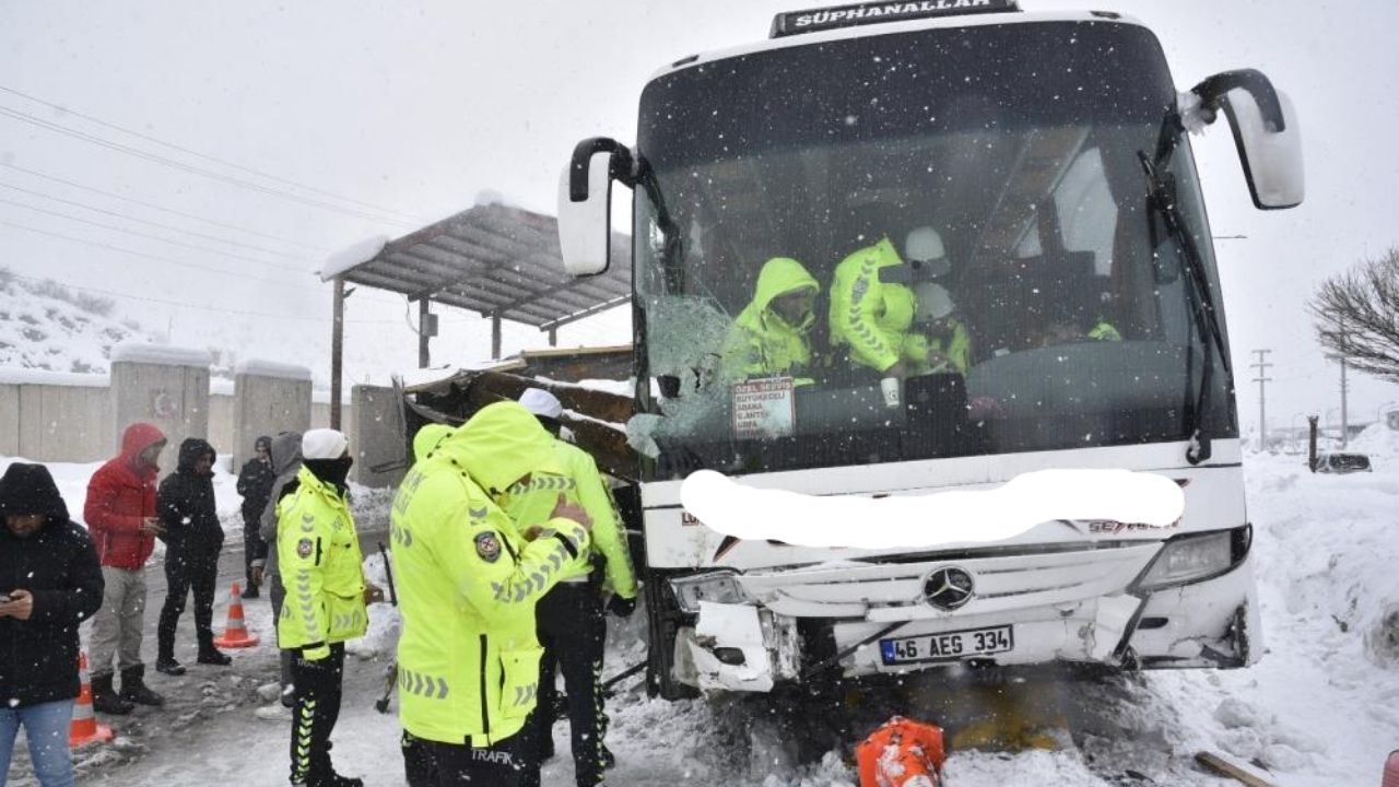 Görüntülerde, Diyarbakır'dan Van istikametine giden otobüsün, Arıcılık mevkiinde yol tutuşunu kaybettiği ve doğrudan polis kulübesine doğru savrulduğu açıkça görülüyor. Sürücü, kaygan zeminde aracı kontrol edemedi.