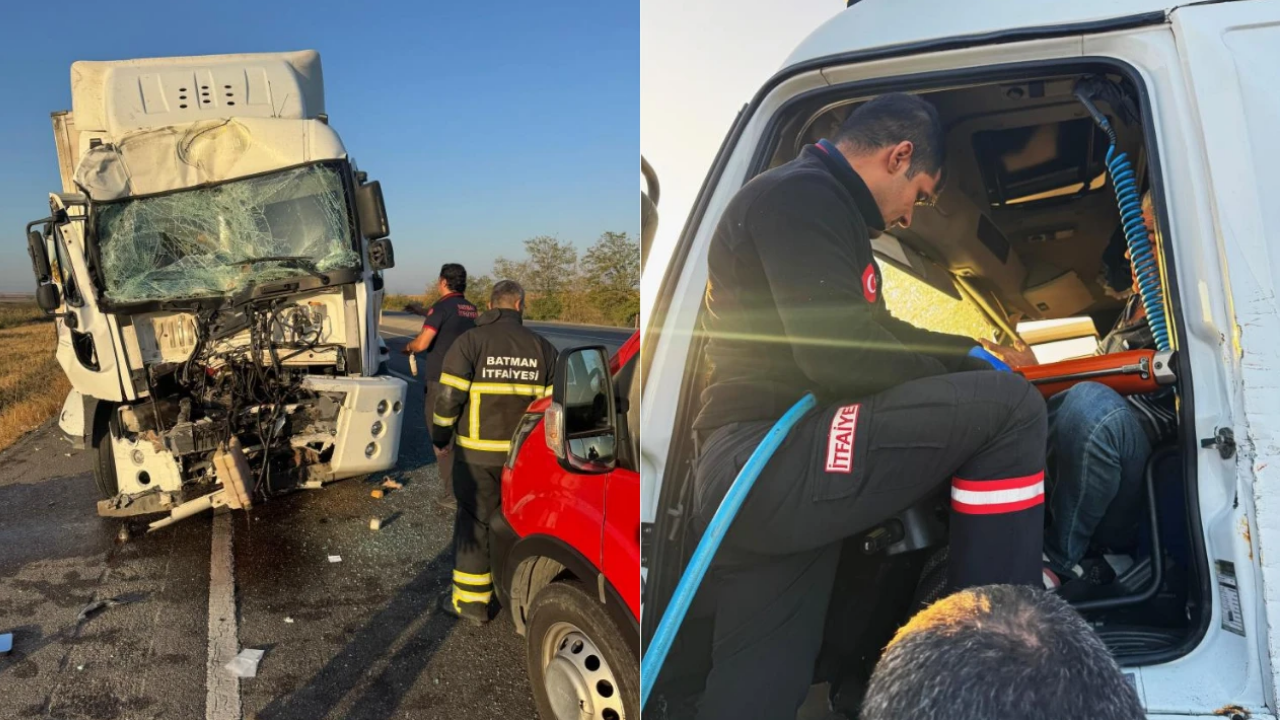 Diyarbakır’dan Batman istikametine giden iki tır, Silvan ilçesi yakınlarında Sinan köyü mevkiinde çarpıştı. Kazada şoförlerden biri araçta sıkıştı.