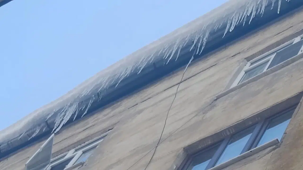 Mahallede bulunan bir binada, sivri ve ok şeklini andıran buz sarkıtları çevrede tehlike oluştururken, oluşan görüntüler bir vatandaş tarafından cep telefonu kamerasıyla kaydedildi.