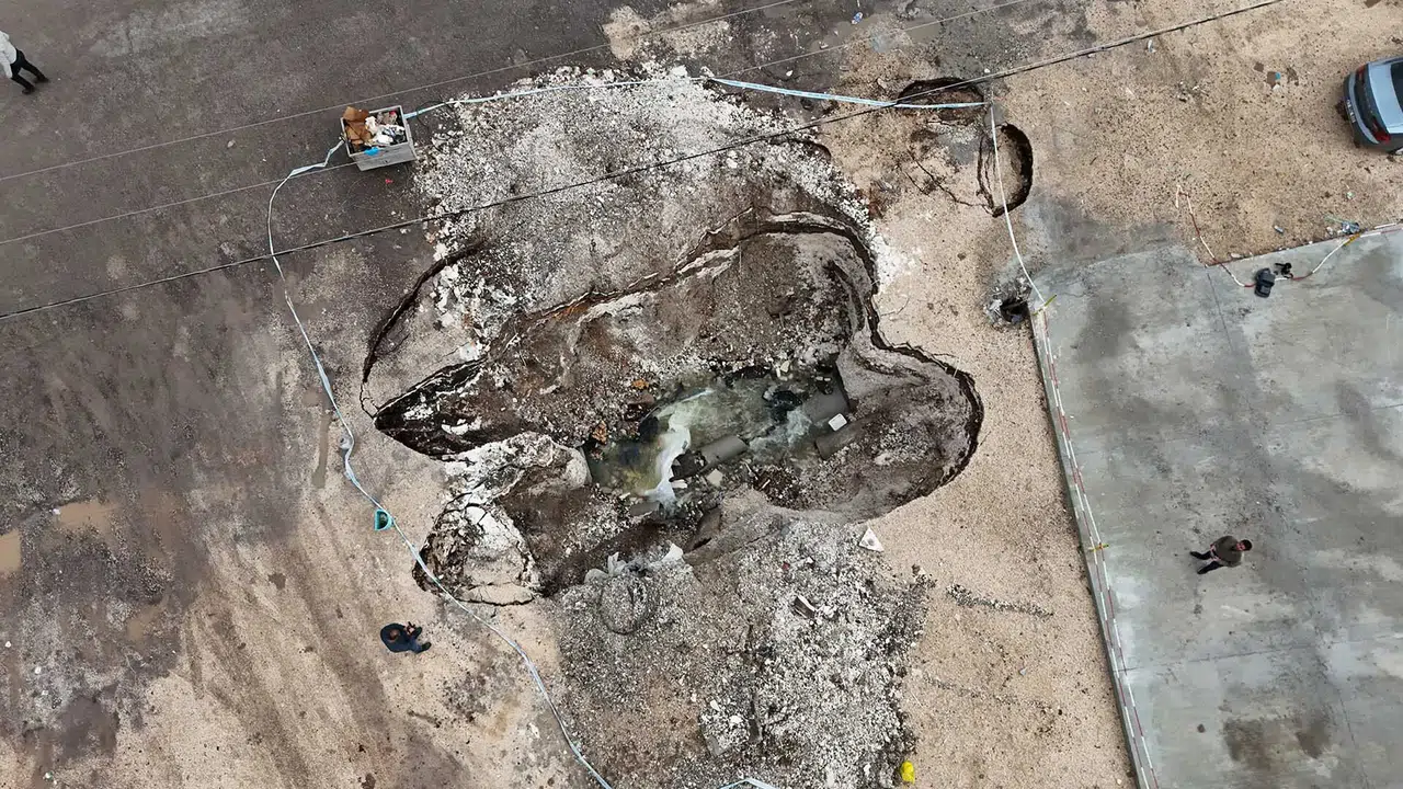 Diyarbakır’ın merkez Yenişehir ilçesi Al Mahallesi Organize Sanayi Caddesi kenarında çökmeler sonucu oluşan dev çukur dronla görüntülendi. Yağışların etkisiyle genişlediği belirtilen çukurun, sürücüler ve yayalar için tehlike oluşturduğu ifade edildi.