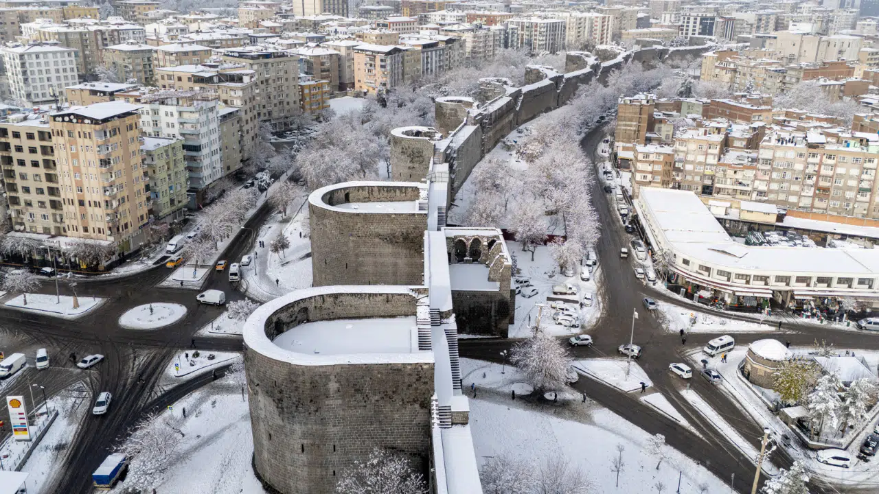 UNESCO Dünya Mirası Listesi’nde yer alan Diyarbakır Surları, Hevsel Bahçeleri ve On Gözlü Köprü, kar yağışıyla birlikte beyaz örtü altında farklı bir görünüme kavuştu. Kentin simge yapıları, kar manzarasıyla birlikte görsel bir bütünlük oluşturdu.