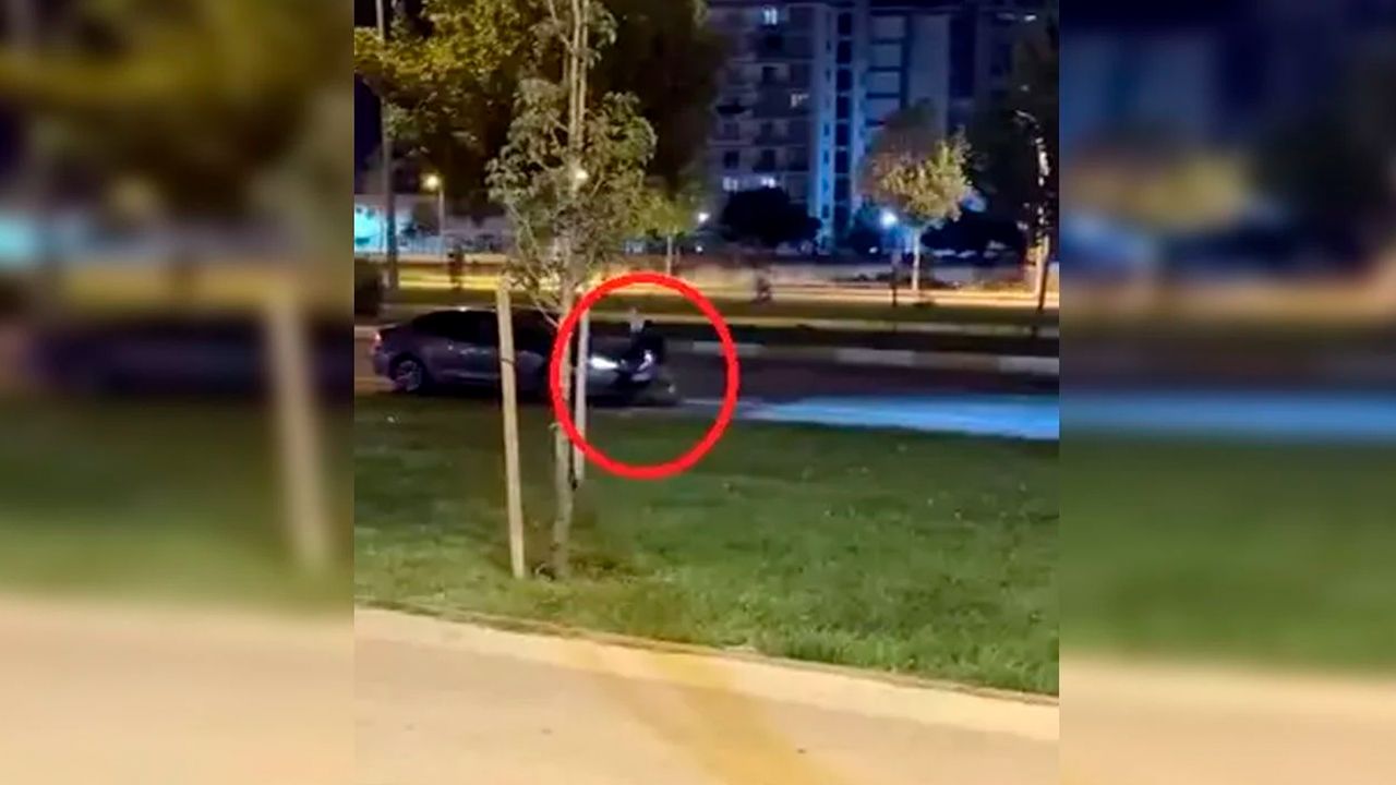 Alkollü olduğu belirtilen kadın, sürücülerin uyarılarına tepki gösterdi ve bazı araçlara tekme attı. O anlar, çevredeki bir kişi tarafından cep telefonu kamerasıyla kaydedildi.