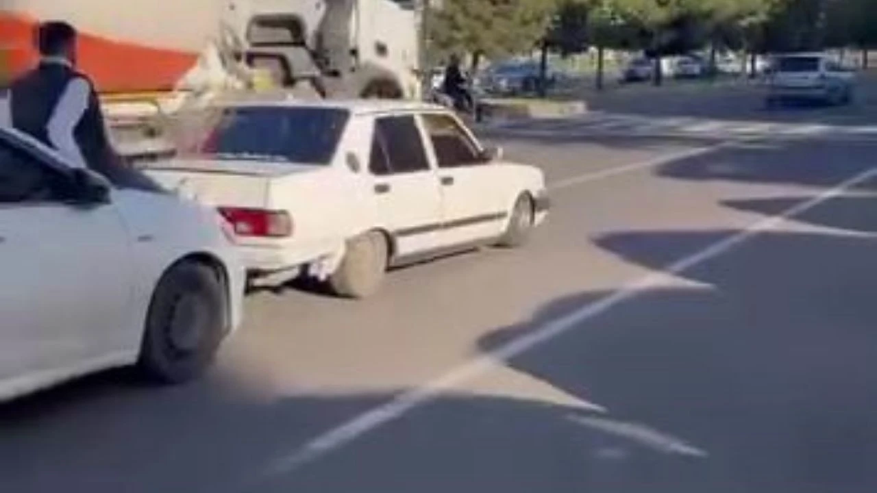Diyarbakır’ın Kayapınar ilçesinde trafiği tehlikeye düşüren ilginç bir olay yaşandı. Seyir halindeyken arızalanan Fiat Tofaş marka otomobili çalıştıramayan sürücü ve yanındakiler, sıra dışı bir yöntemle aracı hareket ettirmeye çalıştı.