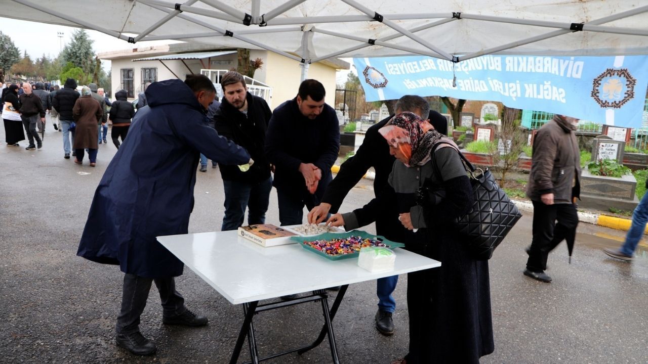 Sağlık İşleri Dairesi Başkanlığı ekipleri, bayram ziyaretlerinin yoğun olduğu kentteki tüm mezarlıklarda vatandaşlara ikram yaptı. Mezarlık ziyaretine gelen yurttaşlara şeker, lokum ve kolonya sunan ekipler, bayramın dayanışma ve paylaşma ruhunu yaşattı.