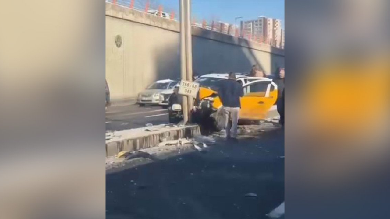 Edinilen bilgilere göre, kar yağışı sonrası yolun buzlanması nedeniyle kontrolden çıkan taksi, alt geçitte savrularak aydınlatma direğine çarptı. Çarpmanın etkisiyle araçta maddi hasar oluştu.