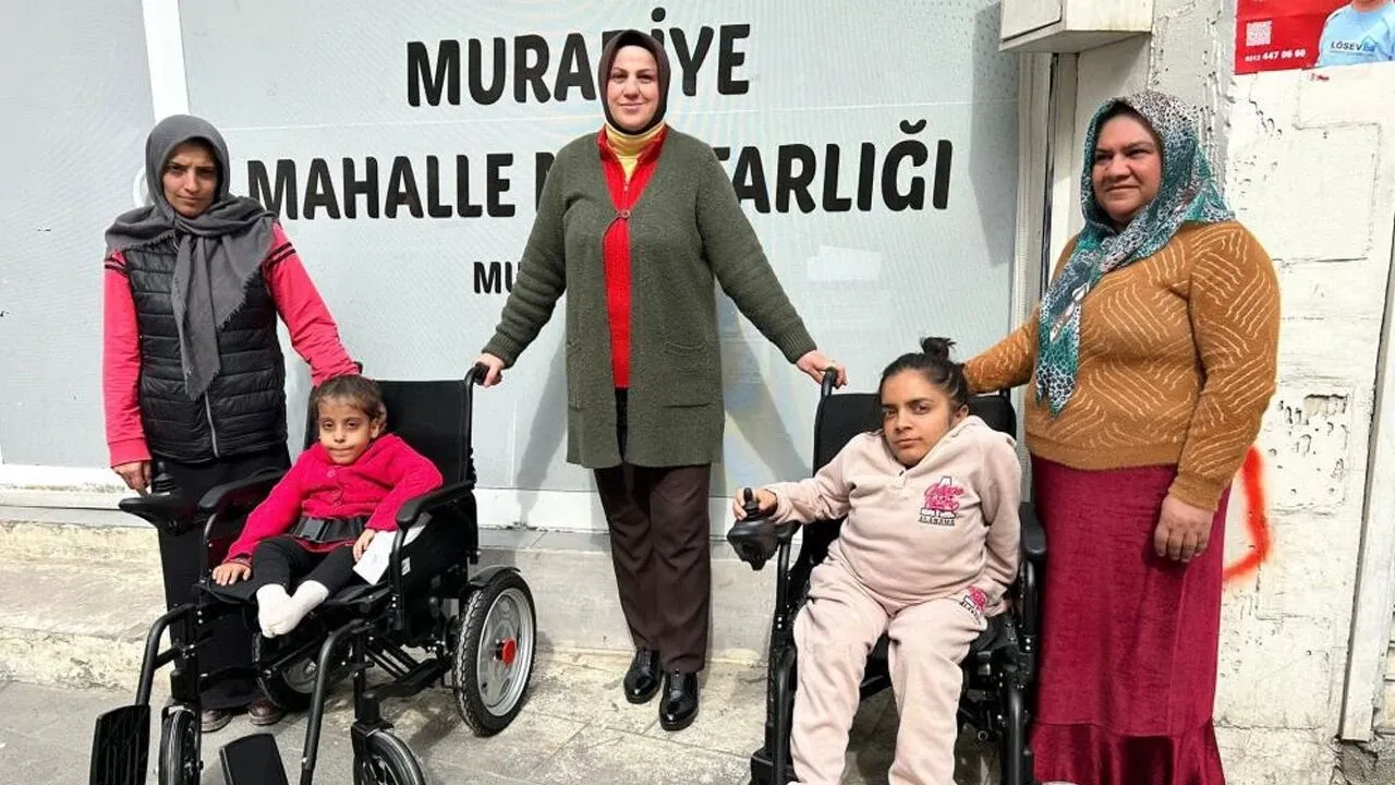Diyarbakır’ın Bağlar ilçesi Muradiye Mahallesi Muhtarı Dilek Demir, hayırseverler tarafından bağışlanan 2 akülü sandalyeyi fiziksel engelli Fatoş Kaya (23) ve Hatice Çelik’e (7) teslim etti. Teslim töreni mahallede gerçekleştirildi.