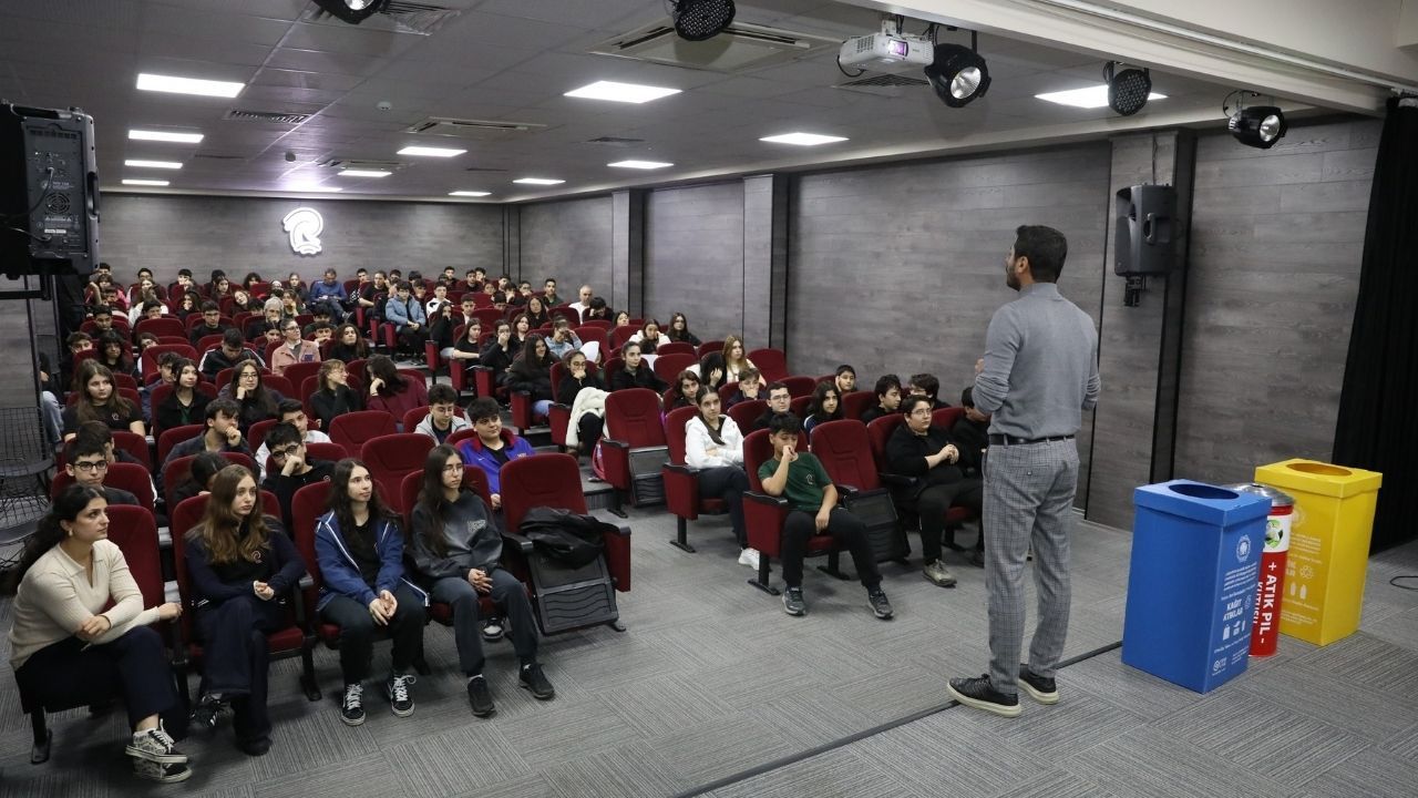 Eğitimde neler yok ki! Geri dönüşümden sıfır atığa, yenilenebilir enerjiden iklim değişikliğine kadar pek çok başlık ele alındı. Alanında uzman personel, öğrencilere sürdürülebilir bir dünya için bireylere düşen görevleri anlattı.