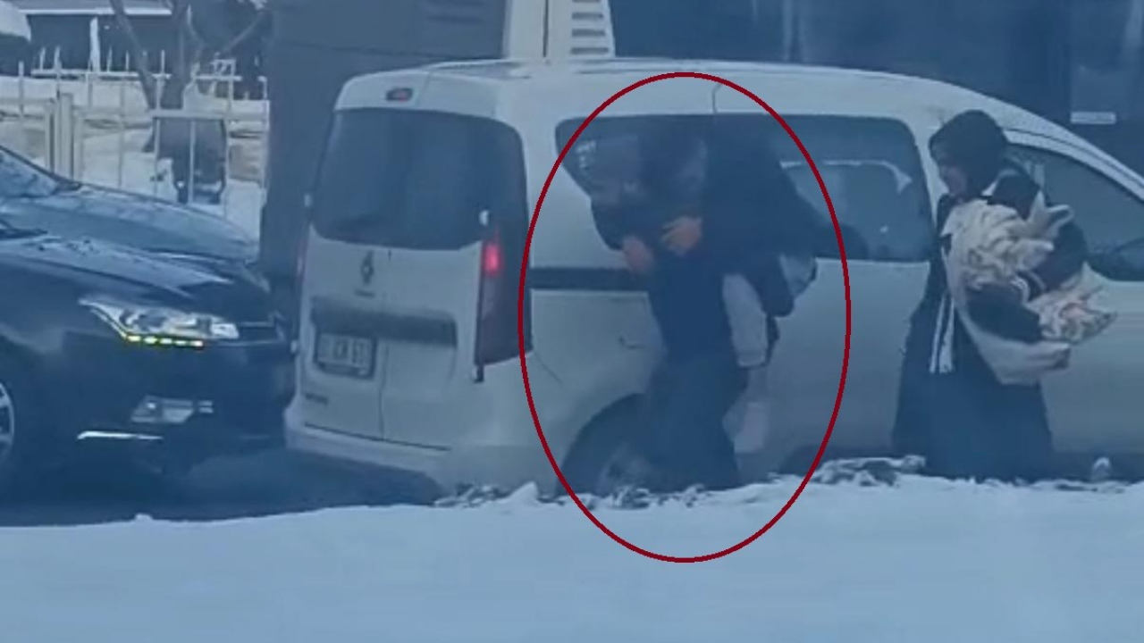 Kar yağışı sonrası ana arterlerde ve bağlantı yollarında yaşanan yoğunluk, bazı bölgelerde araçların ilerlemesini imkânsız hale getirdi. Bu sırada hastaneden çıkan bir vatandaş, hastasının daha fazla mağdur olmaması için araçtan inerek hastayı sırtına aldı ve yürüyerek götürmeye başladı.