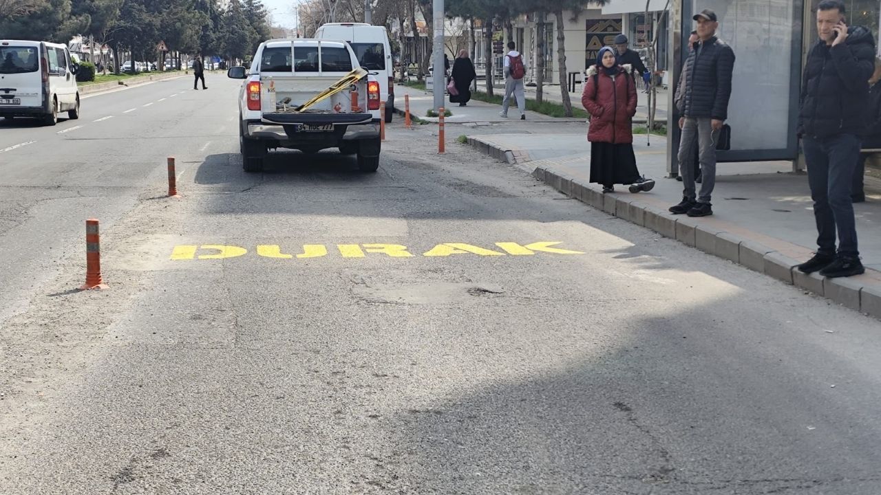 Ekipler, otobüs bekleme alanlarına durak yazıları uygulayarak vatandaşların toplu taşıma araçlarına daha kolay erişmesini sağladı.