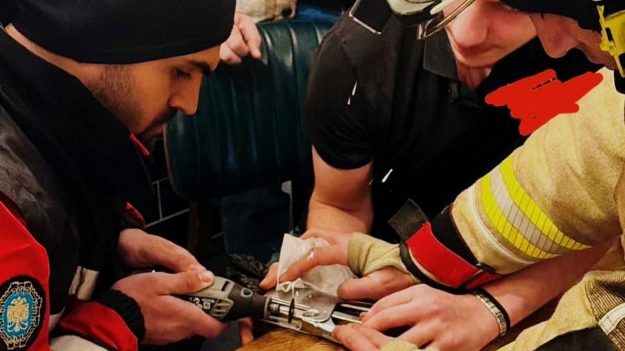 Hastanenin Travma Ünitesi'ndeki doktorlar, genç adamın parmağını detaylı olarak inceledi. Tıbbi değerlendirmenin sonrasında parmak uyuşturularak, zımba makinesinden kontrollü bir şekilde ve hasar en aza indirilerek çıkarıldı.