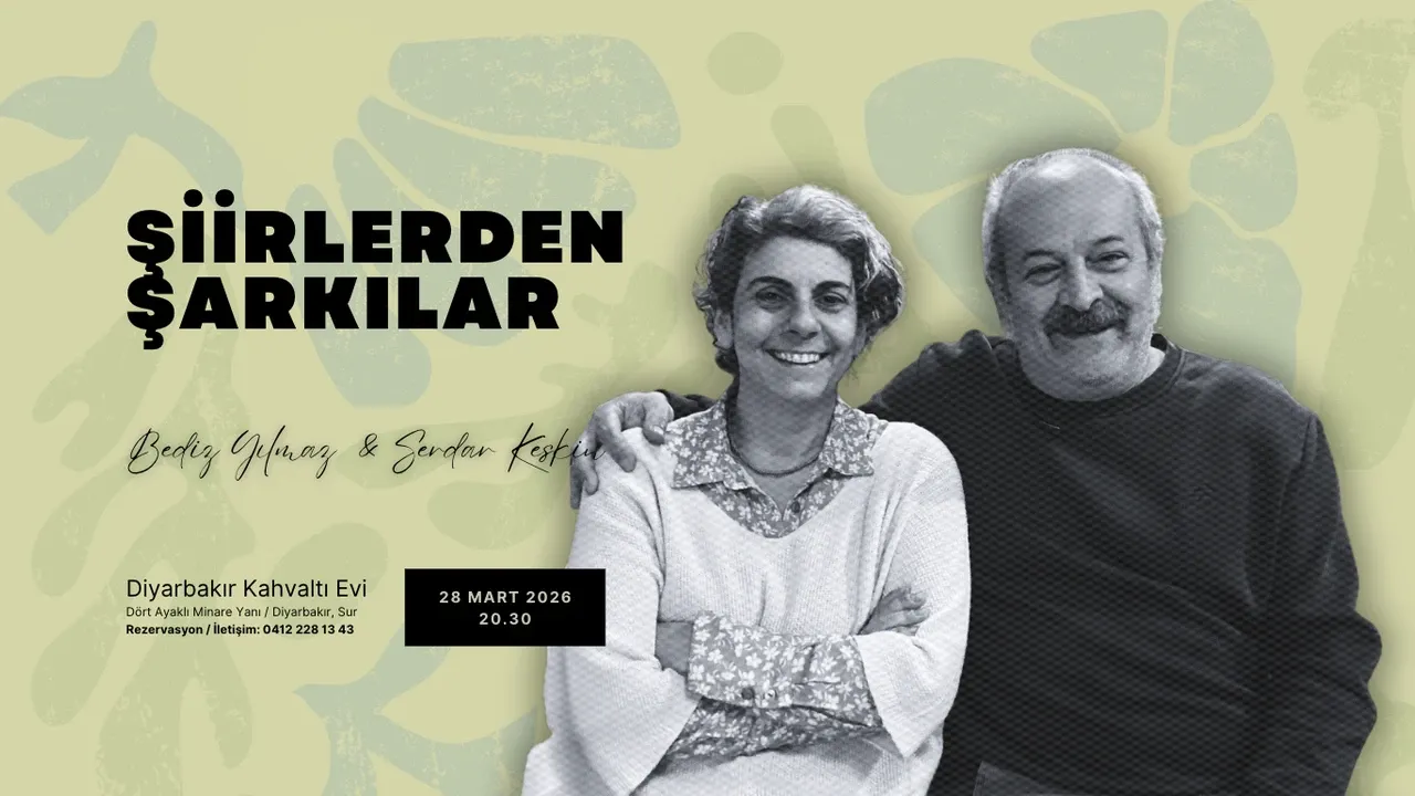 Daha önce İstanbul, Mersin, Hatay ve Almanya gibi farklı coğrafyalarda izleyiciyle buluşarak büyük beğeni toplayan "Şiirlerden Şarkılar" dinletisi, bu kez Diyarbakır'da yapılacak.
