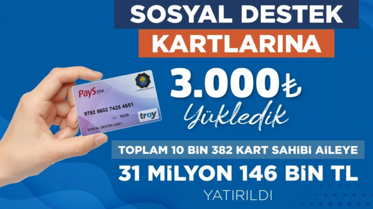 Belediye tarafından yapılan açıklamaya göre, SODES Kart’tan yararlanması uygun görülen 10 bin 382 yurttaşın kartlarına kişi başı 3 bin TL aktarıldı. Böylece yalnızca aralık ayında sağlanan toplam destek tutarı 31 milyon 146 bin TL oldu.