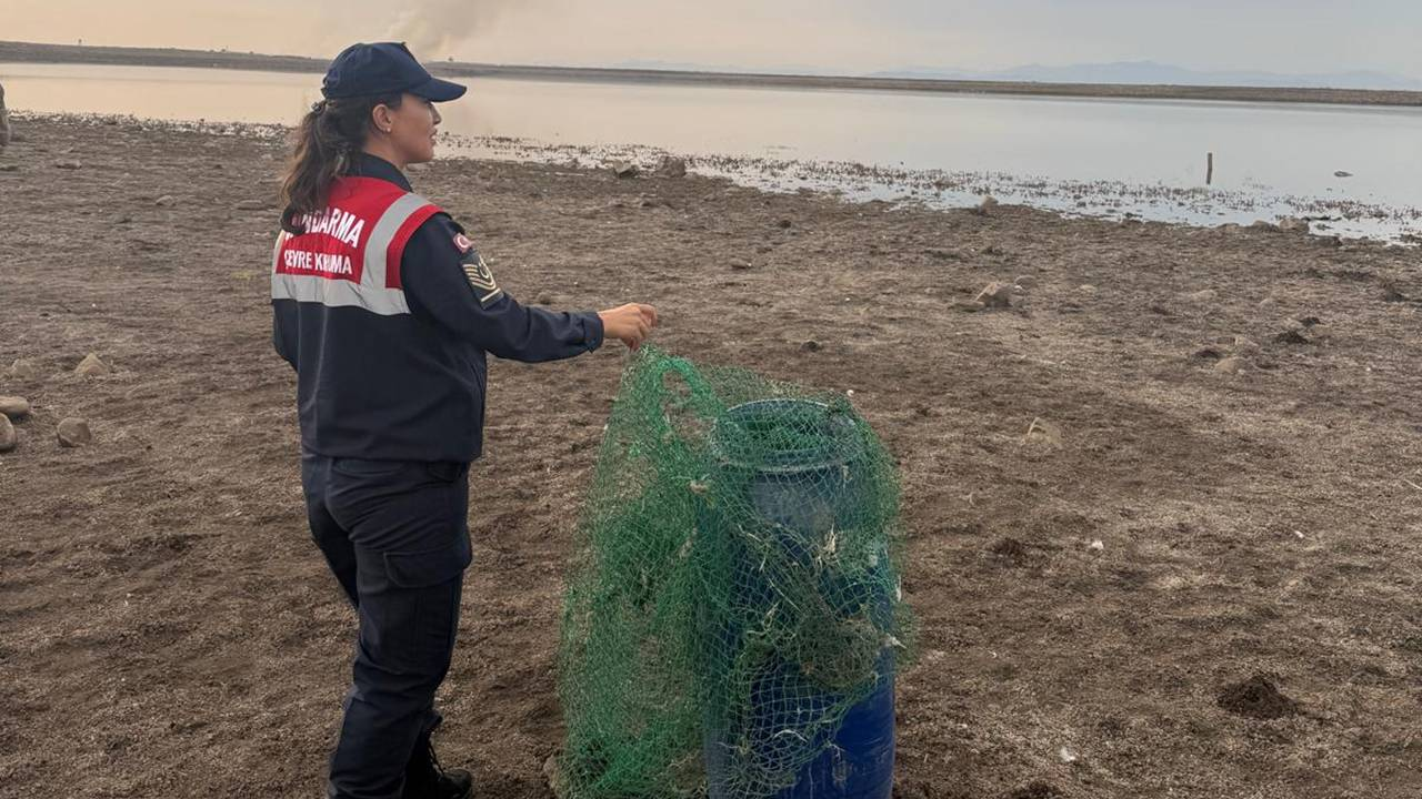 İl Jandarma Komutanlığı Çevre Doğa ve Hayvanları Koruma Timi ile İl Tarım ve Orman Müdürlüğü Su Ürünleri Şube Müdürlüğü ekiplerince yürütülen denetimlerde, 1 sal, 100 metre misina ağı ve avlanmış inci kefali ele geçirildi.