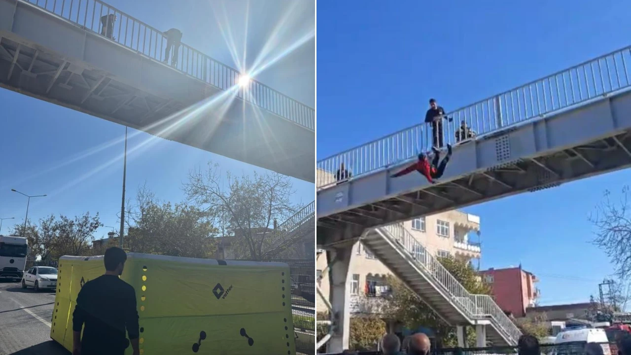 Çevredeki vatandaşlar C.H.’yi ikna etmeye çalışırken, itfaiye ekipleri caddeyi trafiğe kapatarak havalı atlama minderini hazırladı. Bir süre sonra kendini boşluğa bırakan C.H., minderin üzerine düşerek olası bir facianın önüne geçti.