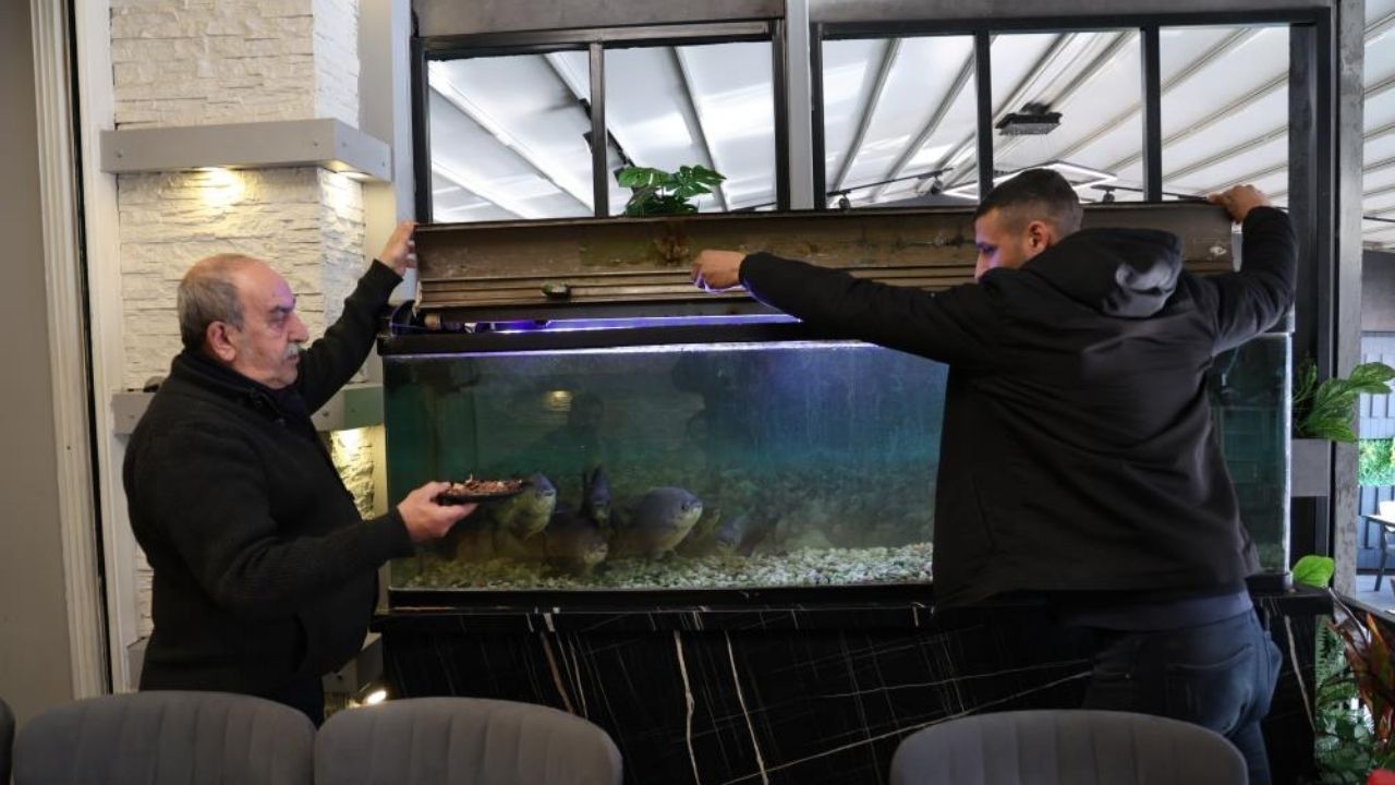 İşletme sahibi Şaban Yakşi, oğlundan kalan bu etçil balıkları oldukça özel bir menüyle besliyor. Keskin dişli piranaların günlük öğününde, lokantanın meşhur yemekleri kelle paça, dil ve işkembe bulunuyor. Yakşi, günde 2-3 porsiyon bu lezzetleri balıklarına yedirdiğini söylüyor.