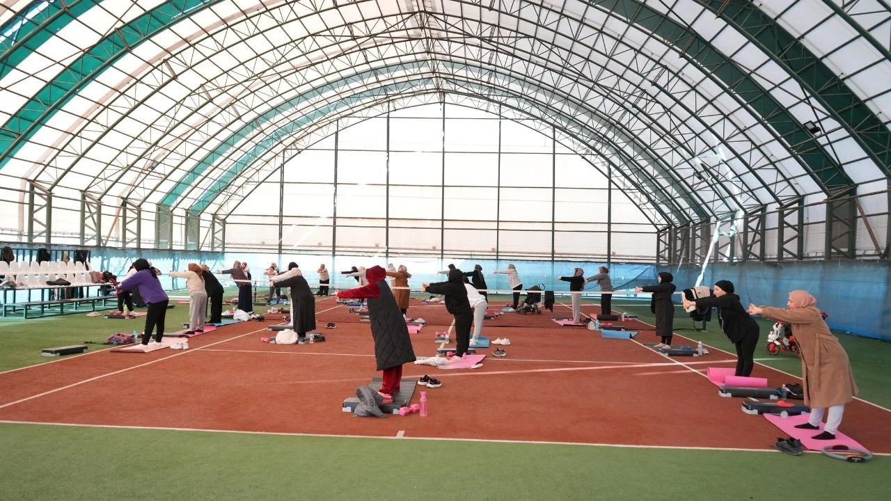 Sabahın erken saatlerinde 500 Evler Spor Kompleksi’nde düzenlenen etkinliklerde kadınlar, alanında uzman antrenörler eşliğinde egzersiz yapıyor. Program kapsamında esneme, kondisyon ve temel spor hareketlerine yer verilirken, katılımcıların hem fiziksel hem de ruhsal olarak desteklenmesi amaçlanıyor.