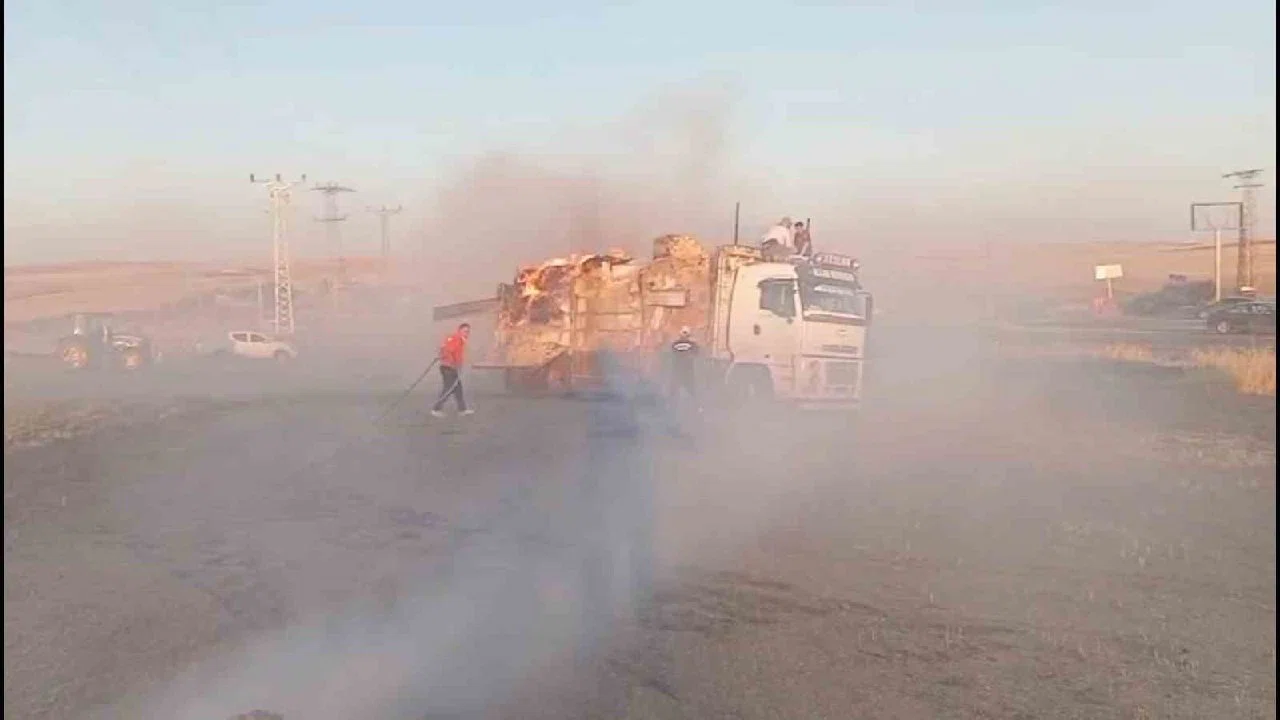 Diyarbakır’ın Silvan ilçesinde, kamyonun saman balyaları yandı. Olay, Kasımlı Mahallesi'nde meydana geldi. Kamyonun yükündeki saman balyalarından duman yükseldiğini gören sürücü, aracı tarlaya çekerek durumu yetkililere bildirdi.