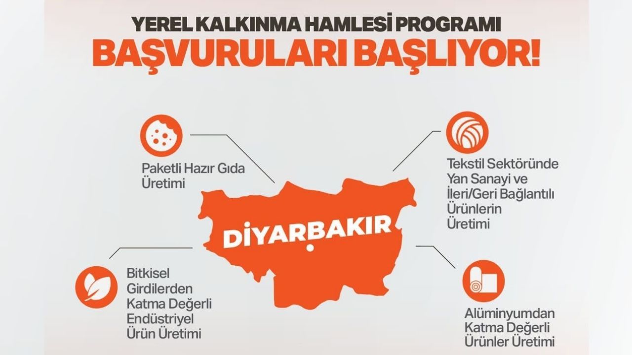 Diyarbakır Valiliği programla ilgili duyuru yaptı. Valiliğin açıklamasında "Diyarbakır’da yatırımlar yerel kalkınmaya dönüşüyor. Yerel Kalkınma Hamlesi 2026 başvuruları başlıyor: 301 milyon TL’ye kadar nakdî destek + %50 yatırıma katkı oranıyla vergi indirimi. Başvuru takvimi 2 Mart – 15 Mayıs 2026" ifadeleri yer aldı.